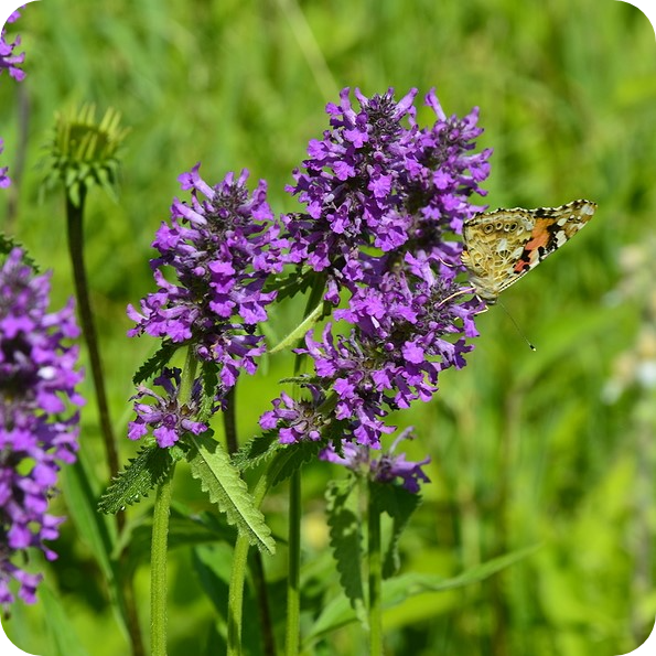 Betony (Stachys officinalis) is a perennial herb belonging to the mint family. It grows widely across England and Wales but is generally absent from Scotland and Ireland. This herb produces striking purple flowers that bloom in summer, adding color to grasslands and woodland edges. Betony thrives in a variety of habitats, from mildly acidic to alkaline soils. It prefers damp, well-drained areas and is commonly found on riverbanks, roadsides, open woodlands, and traditional grasslands. The plant’s upright stems and attractive foliage make it a recognizable and valuable addition to wildflower-rich landscapes.