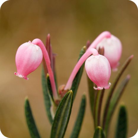 Bog Rosemary (Andromeda polifolia) is a compact, evergreen shrub with narrow, blue-green leaves that remain attractive year-round. It produces delicate, bell-shaped pink flowers in spring, creating a soft splash of colour. The plant thrives in acidic, boggy soils and is ideal for wetlands, pond edges, and damp garden areas. It also provides structure and interest in naturalistic planting schemes while supporting pollinators.