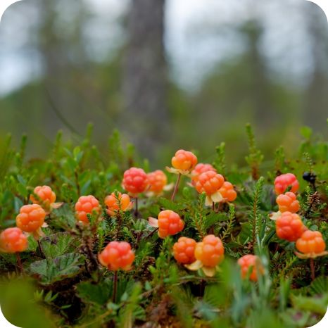 Cloudberry (Rubus chamaemorus) is a low-growing herbaceous plant with soft, white flowers that bloom in early summer. These flowers develop into bright orange, raspberry-like fruits that are edible and highly prized. It thrives in cool, boggy environments, including peatlands and wet heathlands. Cloudberry adds seasonal interest and supports pollinators, making it a rare and valuable addition to wildflower gardens and naturalistic plantings.