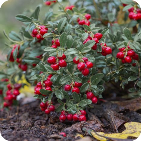 Cowberry (Vaccinium vitis-idaea), also known as Lingonberry , is a low-growing evergreen shrub with glossy, dark green leaves that remain attractive year-round. It produces clusters of bell-shaped pinkish-white flowers in spring, followed by bright red, edible berries in late summer and autumn. The plant thrives in acidic, well-drained soils and is ideal for woodland gardens, heathlands, and rockeries. Lingonberry also attracts pollinators and adds year-round interest with its foliage and colourful fruit.