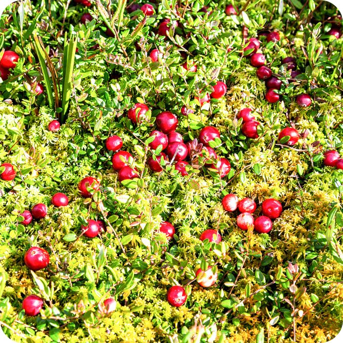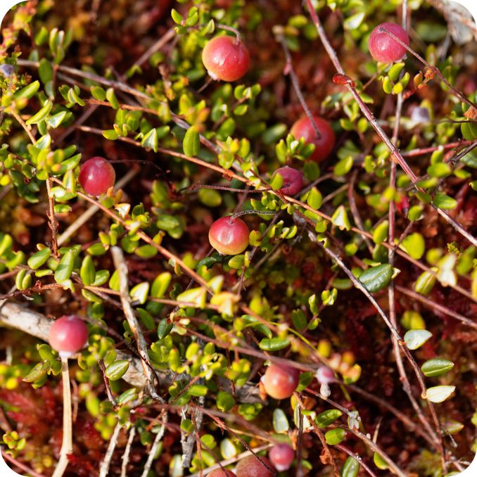 Cranberry (Vaccinium oxycoccos) is a low-growing, evergreen shrub with slender stems and small, glossy green leaves. In late summer, it produces clusters of bright red, edible berries that are rich in antioxidants and vitamins. The plant thrives in acidic, boggy soils and wetland areas, making it ideal for ponds, bog gardens, or moist borders. Cranberry also attracts pollinators and adds year-round interest with its evergreen foliage and vibrant fruit.