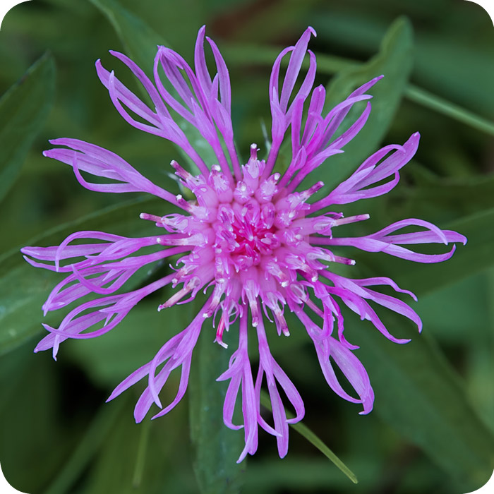 The Greater Knapweed plant does best in dry alkaline soils. It will cope in a garden border and needs cut back each year. |