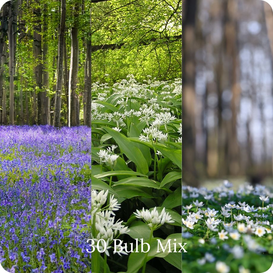 Our late spring bulbs in the green mix combines Bluebell, Wild garlic (ramson), and Wood anemone bulbs. Plant these bulbs to create a natural woodland display of soft whites and blues, flowering in mid to late spring. Perfect for woodland, dappled shade areas and gardens, while supporting pollinators.