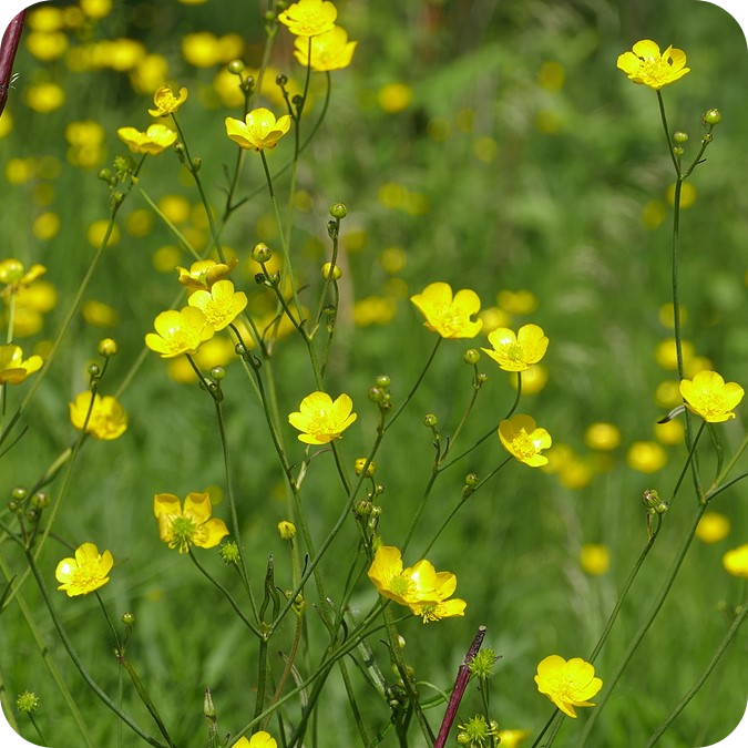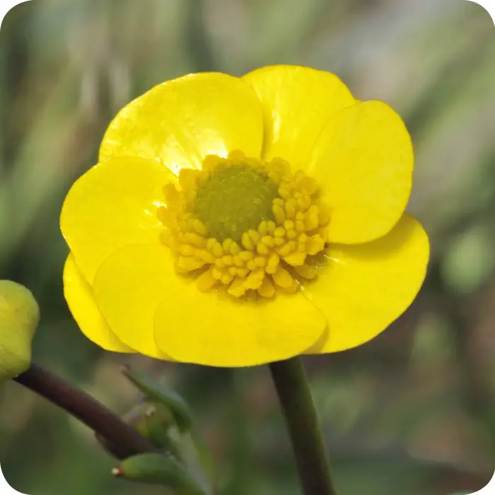 Lesser Spearwort (Ranunculus flammula) has distinctive scrambling stems with a red tinge that can root at the leaf junctions. Its shiny, pale yellow flowers can reach 20–30 mm across. The plant grows in marshes, ponds, bogs, water margins, and damp meadows throughout the UK. Ranunculus flammula provides nectar for insects and adds vibrant colour and texture to wetland habitats.