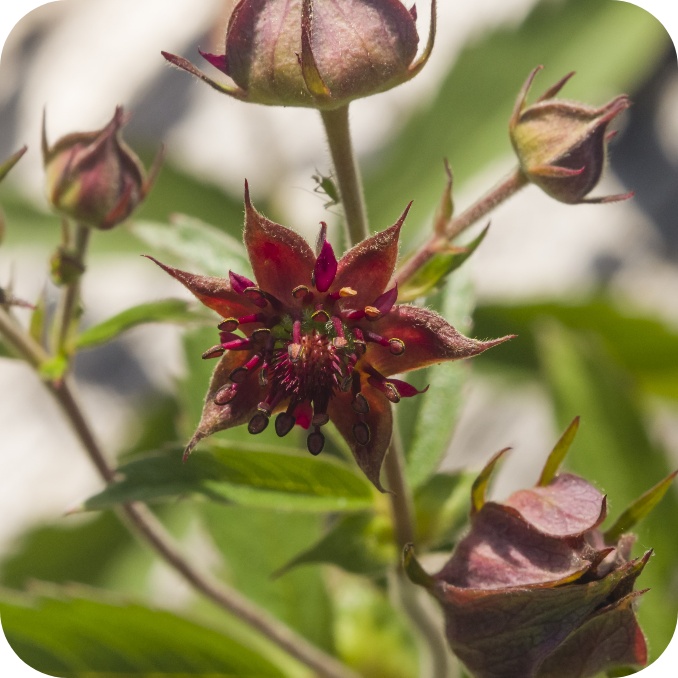 Marsh Cinquefoil (Comarum palustre) grows in marshy ground and boggy pools. It is most common in northern Britain, but its range also includes central Wales, Norfolk, and parts of Ireland. The plant produces reddish-purple flowers with a distinctive shape, unlike many other British wildflowers. Comarum palustre adds vibrant colour and texture to wetland habitats and provides nectar for insects, making it an ecologically valuable species.